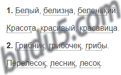 1. Образуйте и запишите по три однокоренных слова с корнями -бел- и -крас-. Выделите основы.