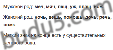 Разделите имена существительные на группы по родам. Существительные какого рода имеют мягкий знак (ь) на конце?