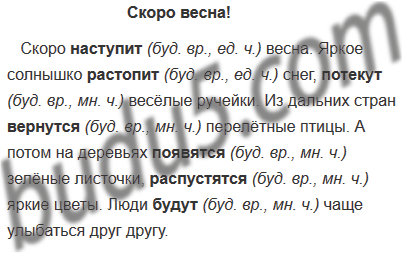 Скоро ... весна. Яркое солнышко ... снег. ... весёлые ручейки. Из дальних стран ... перелётные птицы. А потом на деревьях ... зелёные листочки, ... яркие цветы. Люди ... чаще улыбаться друг другу.