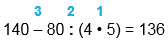 140 - 80 : (4 • 5) = 136
