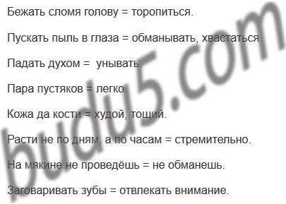 1) Бежать сломя голову. 2) Пускать пыль в глаза. 3) Падать духом. 4) Пара пустяков. 5) Кожа да кости. 6) Расти не по дням, а по часам. 7) На мякине не проведёшь. 8) Заговаривать зубы.