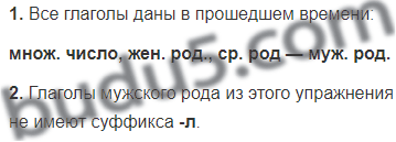 2. Наблюдайте за суффиксом прошедшего времени. В чём отличие глаголов мужского рода от всех остальных глаголов из этого упражнения?